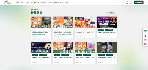 下記よりショート動画大学メディアにアクセスしていただき、右上にある「LOGIN」より、